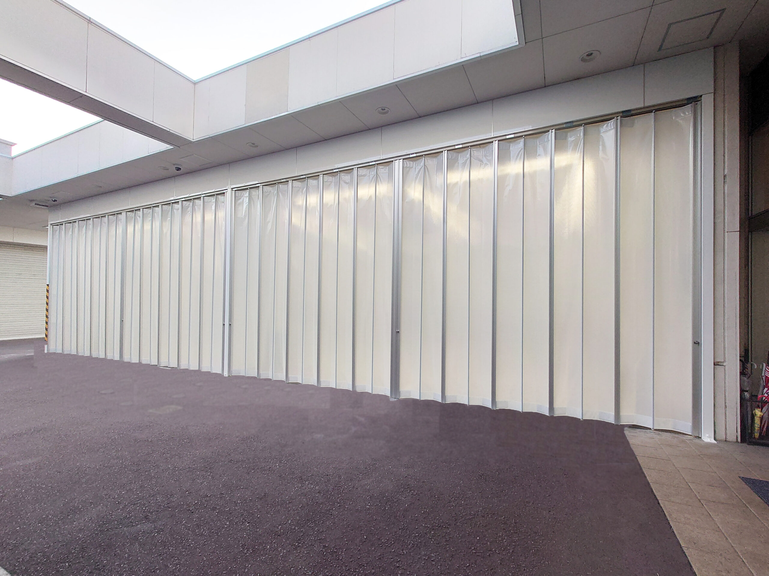 今回はインドアタイプ(下部落しピン仕様)で、サイズは間口約7.8m×高さ約4mのものを2基設置させていただきました。